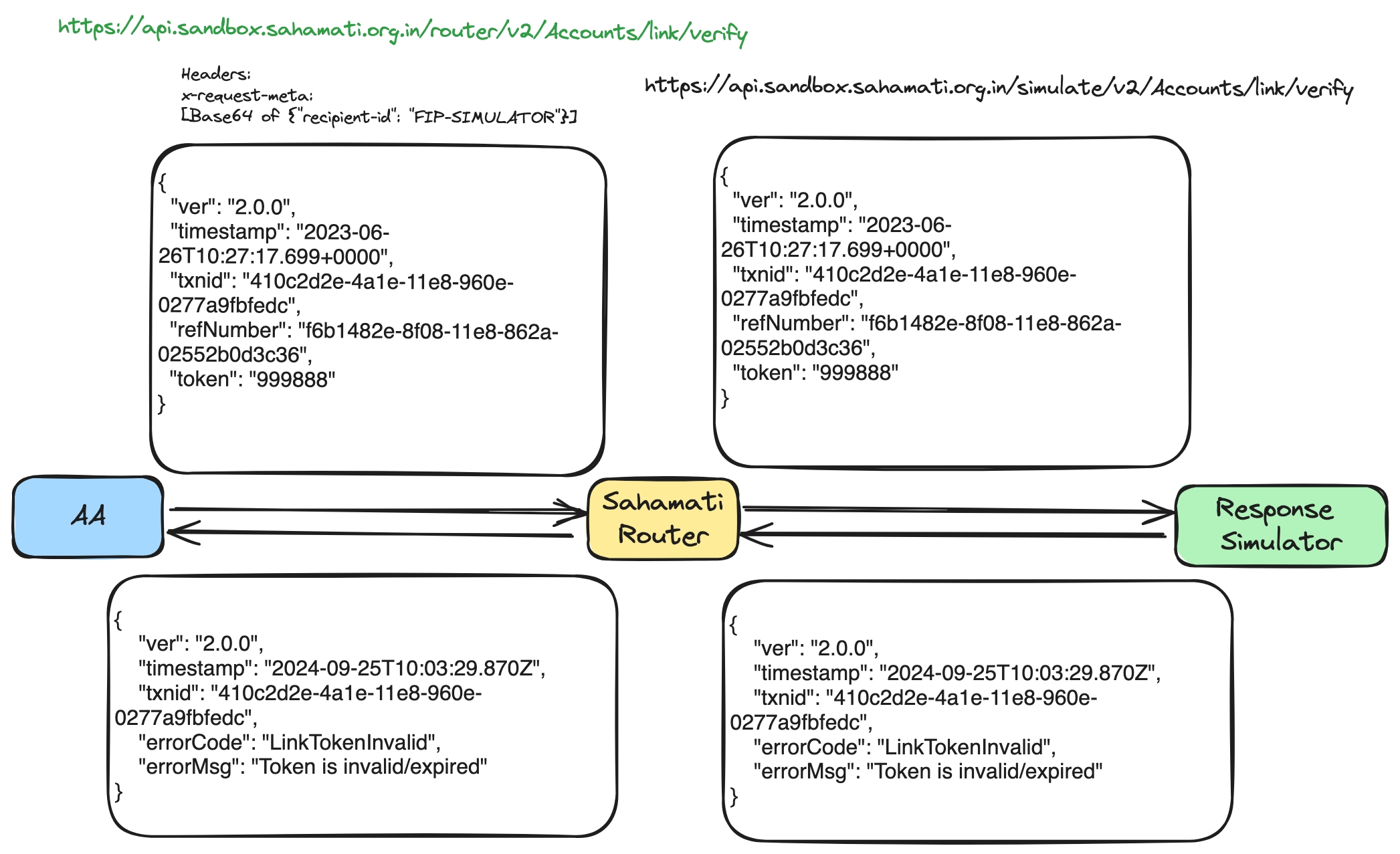 SahamatiNet has developed Response Simulators for each type of entity in the AA ecosystem. These simulators replicate the behaviour of AA, FIU, or FIP while interacting with ReBIT APIs for Router integration, enabling seamless testing and validation.